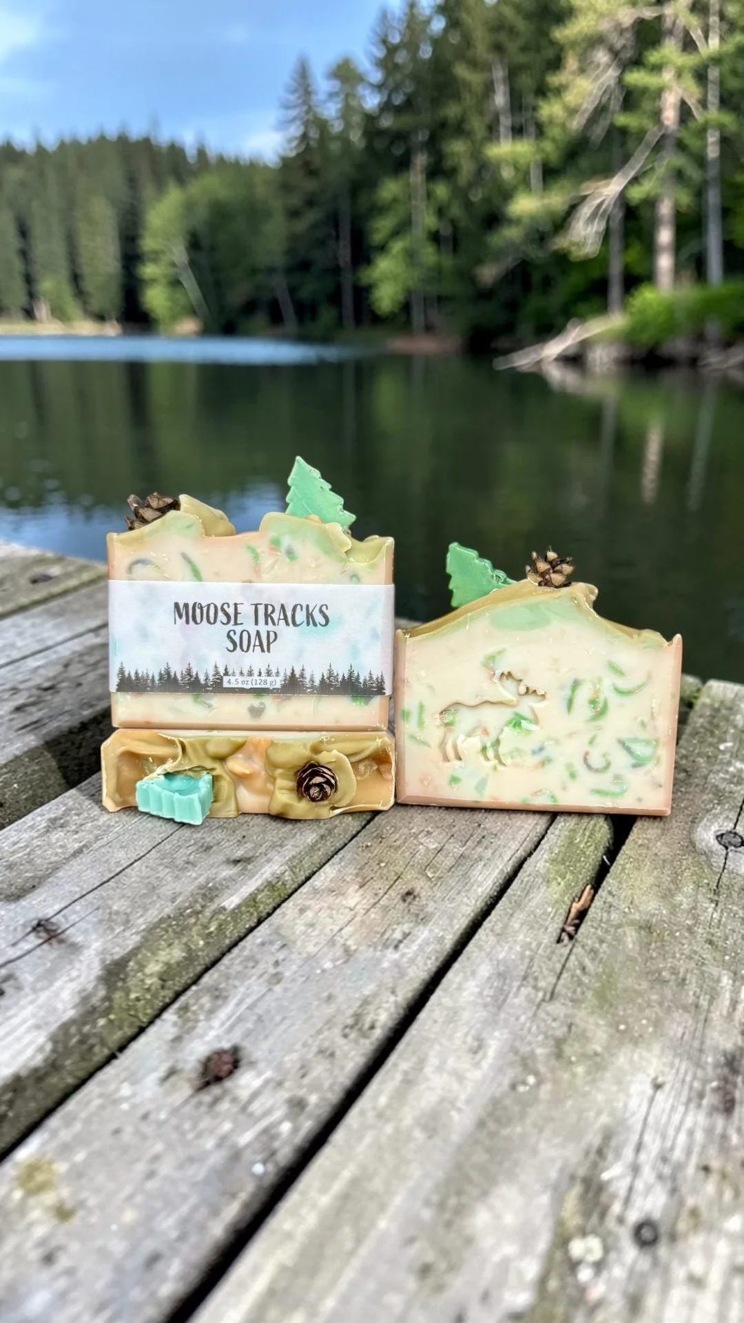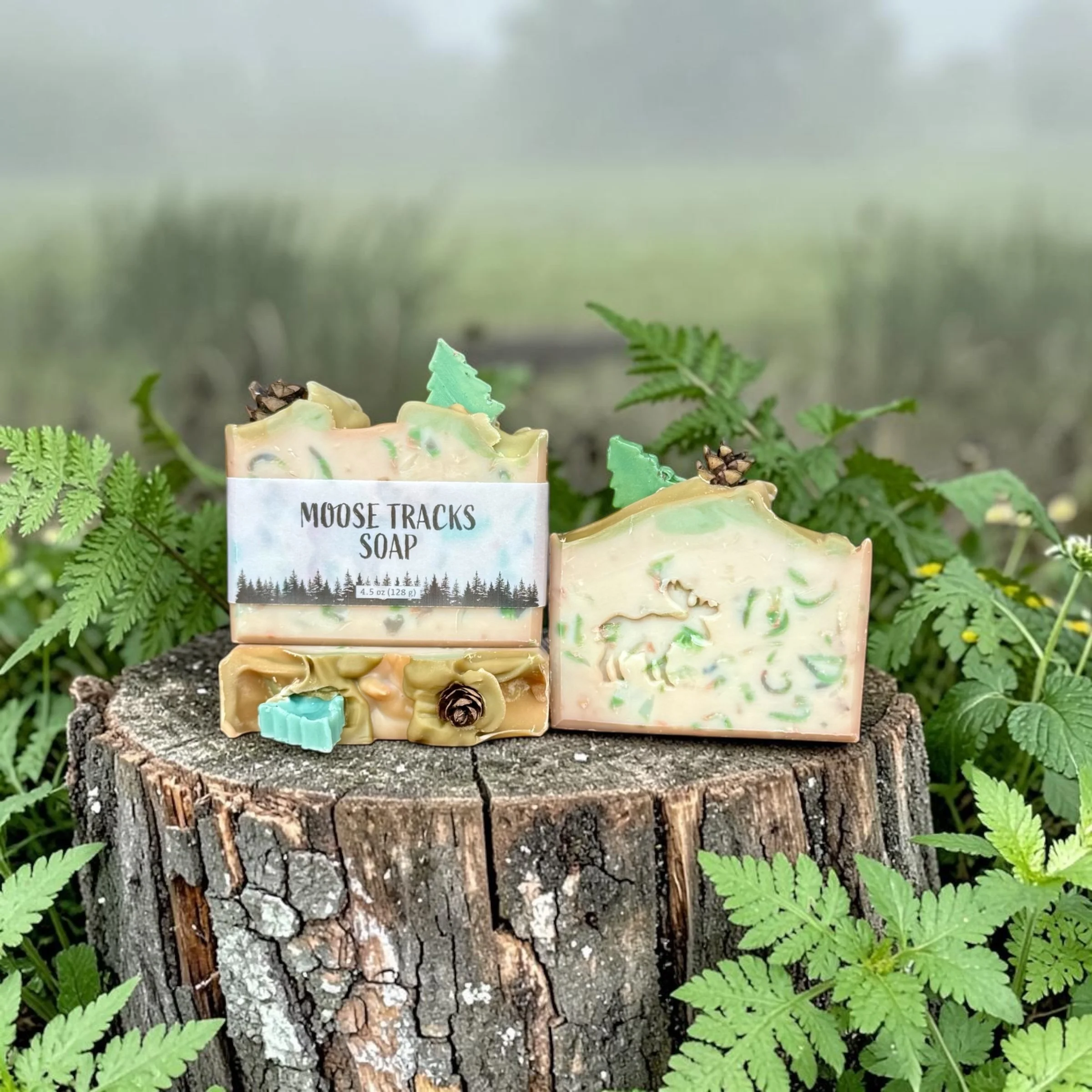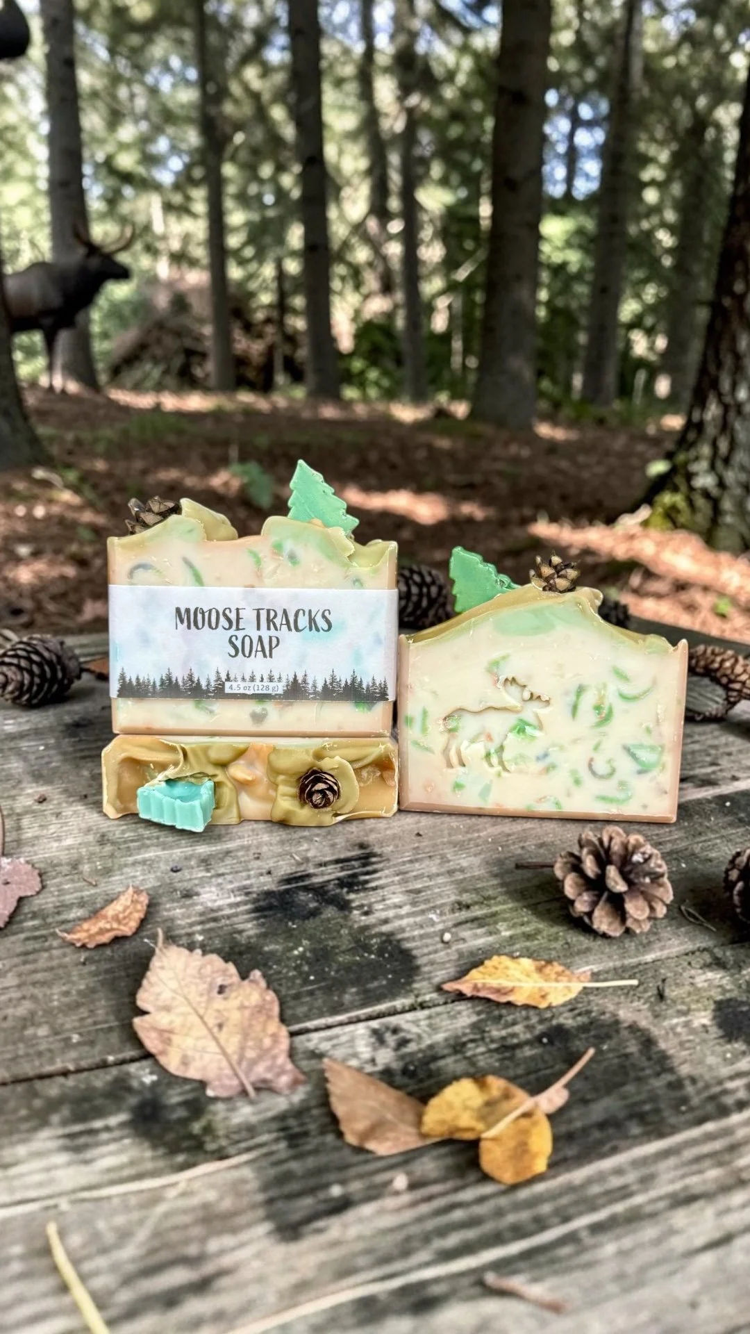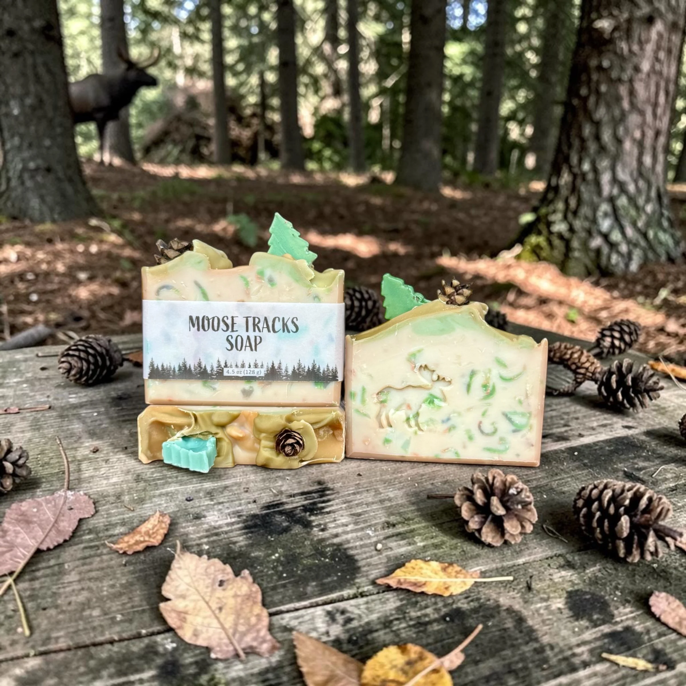 Moving quietly amidst the forest pines with woodland magic vibes comes a moose. This soap is topped with a real mini spruce cone that was locally foraged and kiln dried.